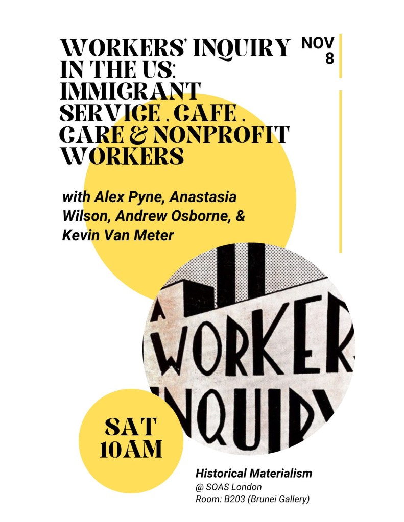 i’ll be at the umass labor center strike conference talking about workers’ inquiry with my pals kevin van meter and the blue bottle indie union.